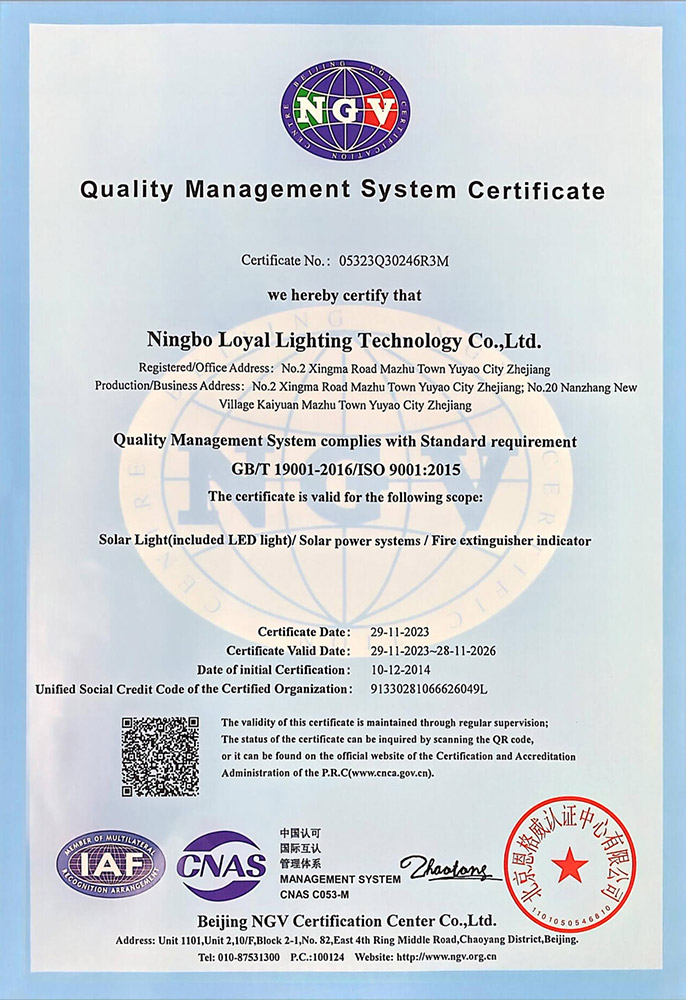 Kehormatan- Ningbo Loyal Lighting Technology Co., Ltd.